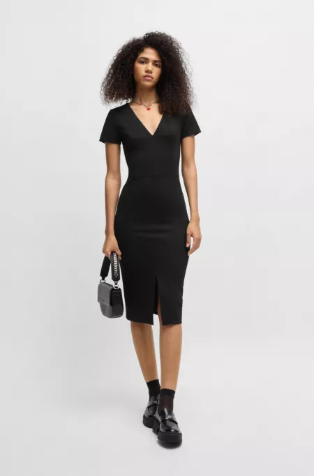 (4)Flattering and versatile, V neck midi dresses are perfect for any occasion. With a neckline that elongates the frame and a midi length that offers elegance and comfort, this style suits everything from casual outings to evening events. Pair with ankle boots for relaxed days or heels for an elevated look. Discover HUGO BOSS midi dresses crafted to complement your style.