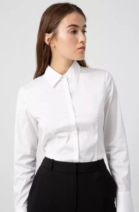 Slim-fit blouse in easy-iron cotton-blend poplin