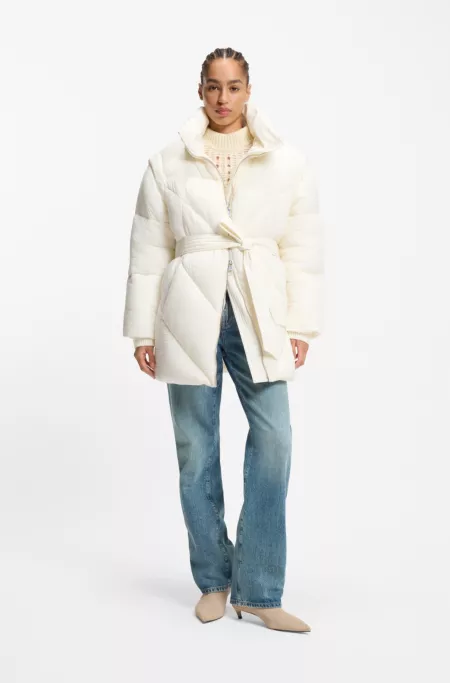 (11)HUGO and BOSS White Jackets for Women brings instant sophistication, offering crisp elegance for any occasion. Whether it's a tailored blazer for business meetings or a sporty zip-up for casual days, this wardrobe essential is the definition of modern refinement. Pair it with monochrome separates for a minimalist aesthetic or layer it over bold prints for contrast. Explore the HUGO BOSS selection—where timeless design meets contemporary edge.