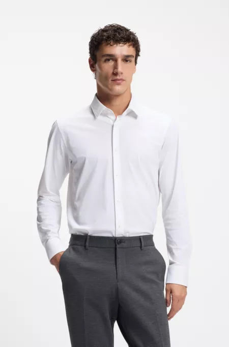 Slim-fit evening shirt in cotton-blend stretch poplin