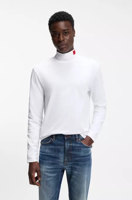 Mock-neck slim-fit T-shirt in mercerised cotton