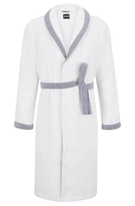 White cotton-velvet dressing gown with embroidered logo