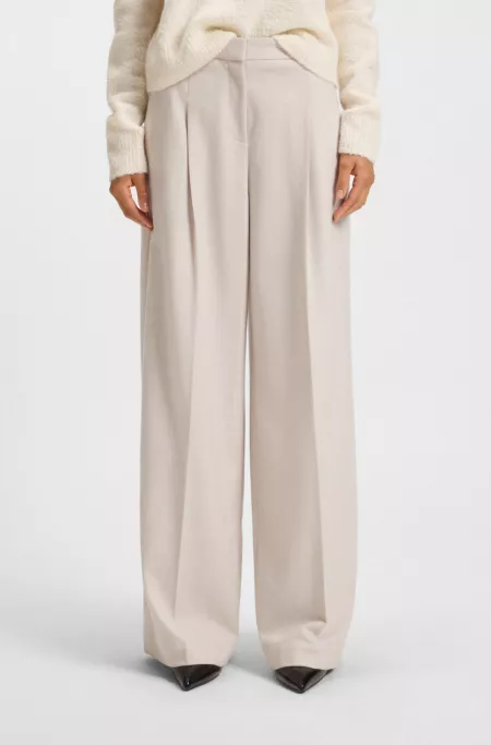 (21)Wide leg trousers are perfect for those seeking a more relaxed yet stylish look. Whether in a formal setting or for casual outings, these trousers offer an effortless balance of comfort and elegance. Pair with fitted tops, blouses, or jackets to complete your look. Explore HUGO BOSS wide leg trousers that offer a modern twist on classic tailoring.