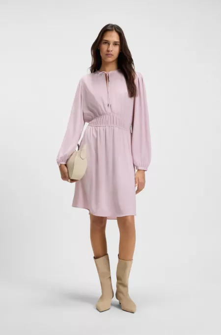 Regular-fit blouse in sandwashed silk with tie neck