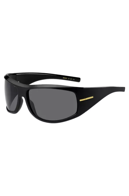 Signature-stripe bio-acetate sunglasses with large temple logo