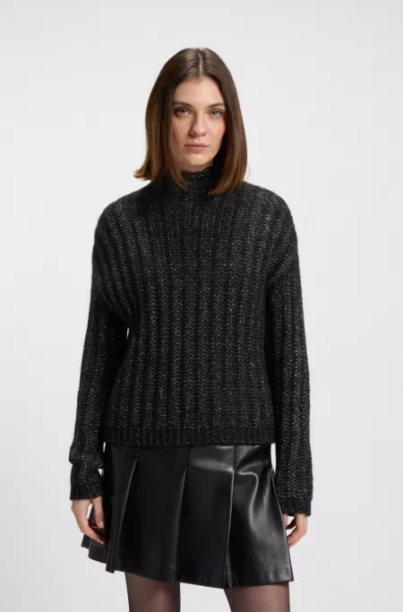 Irregular-rib sweater with mock neck