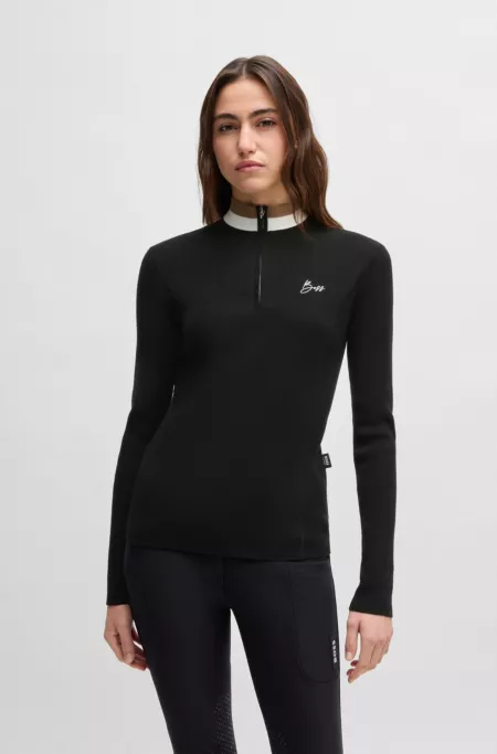 Equestrian zip-neck sweater with ribbed structure