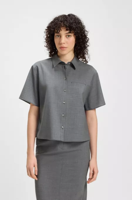 Regular-fit short-sleeved blouse in virgin wool