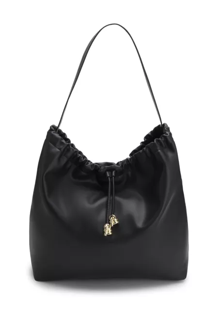 Drawstring shoulder bag with gold-tone hardware