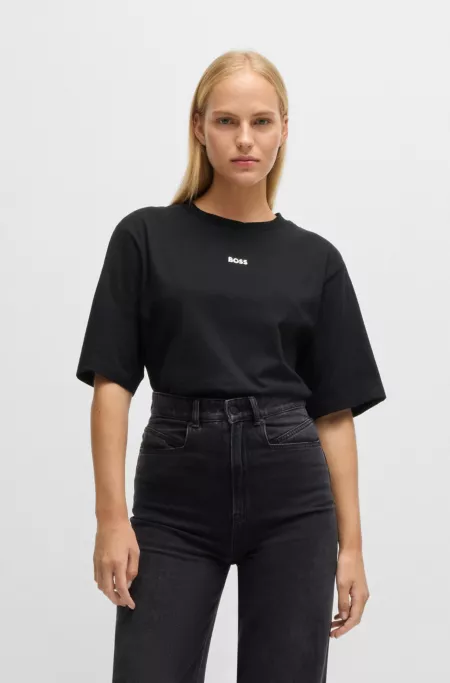 An effortless T-shirt with a centred logo print by BOSS. This piece is cut to a modern oversized fit in soft jersey. This product is partly made with organic cotton. Our organic standards do not allow the use of synthetic fertilisers, pesticides or genetically modified seeds.