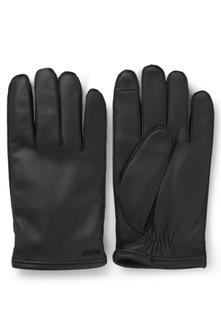 Touchscreen-friendly gloves in leather with metallic logo lettering