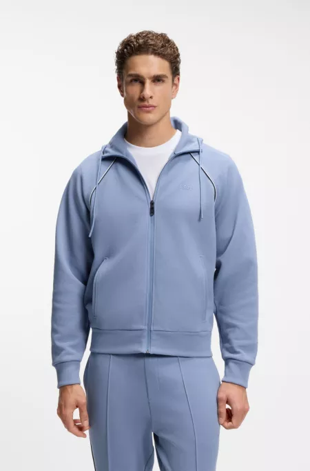 Cotton-blend zip-up hoodie with piping details