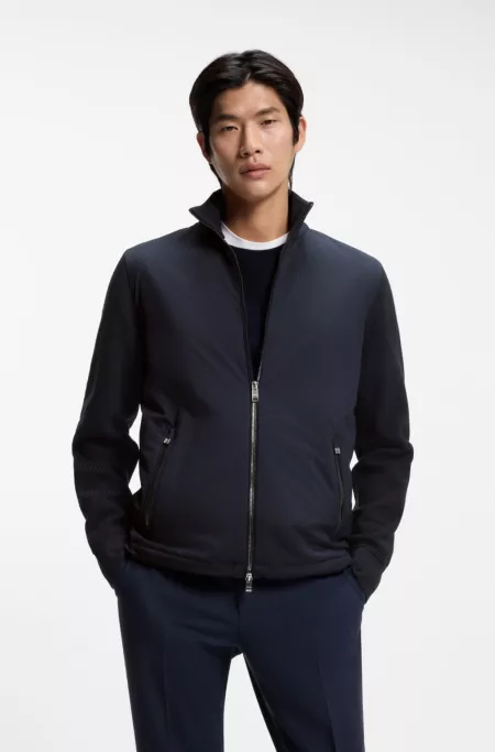 Zip-up jacket in thermoregulating performance fabric