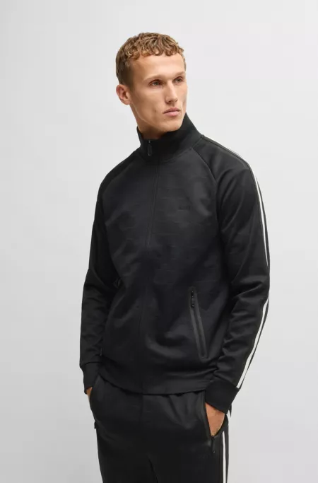 Regular-fit zip-up sweatshirt with quilted jacquard