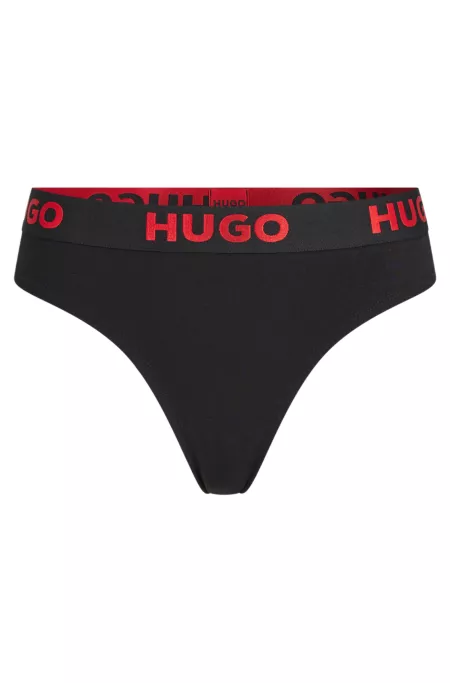 Logo-waistband thong briefs in stretch cotton
