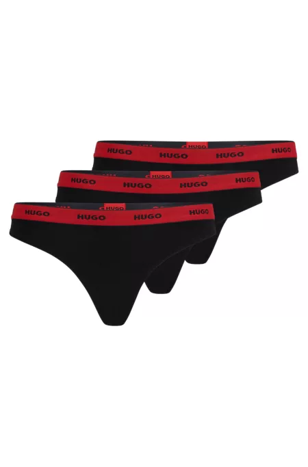 Three-pack of stretch-cotton thong briefs with logos