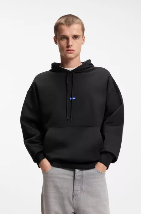 Cotton-terry hoodie with blue logo label
