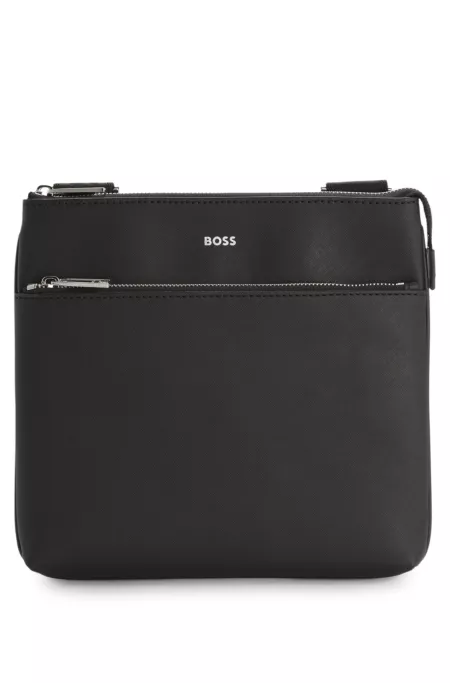 Measurements: 24 x 2. 5 x 25cm Keep essentials close by in this compact BOSS Menswear envelope bag. Crafted in elegant, structured fabric. Silver tone hardware and coordinating foil logo. Adjustable strap.