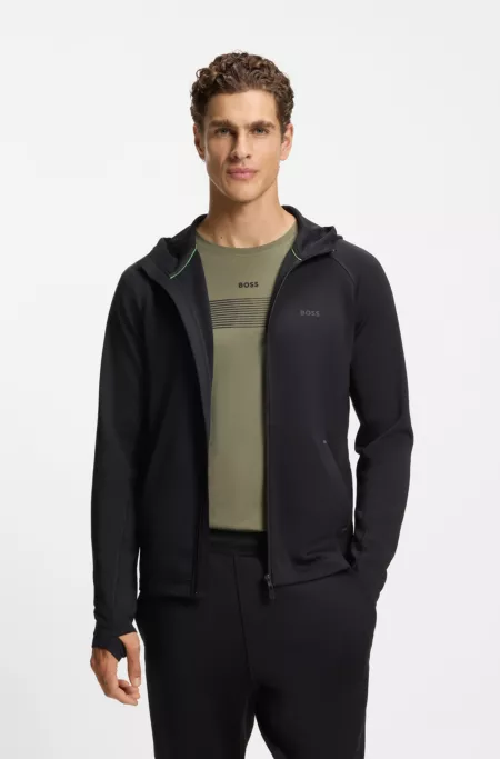 Active-stretch zip-up hoodie with logo detail