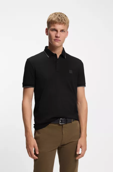 Cotton-jersey polo shirt with contrast edges