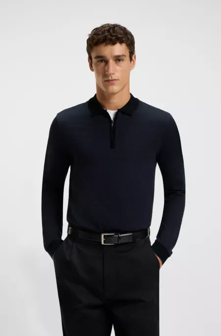 Mercerized-cotton polo shirt with jacquard pattern