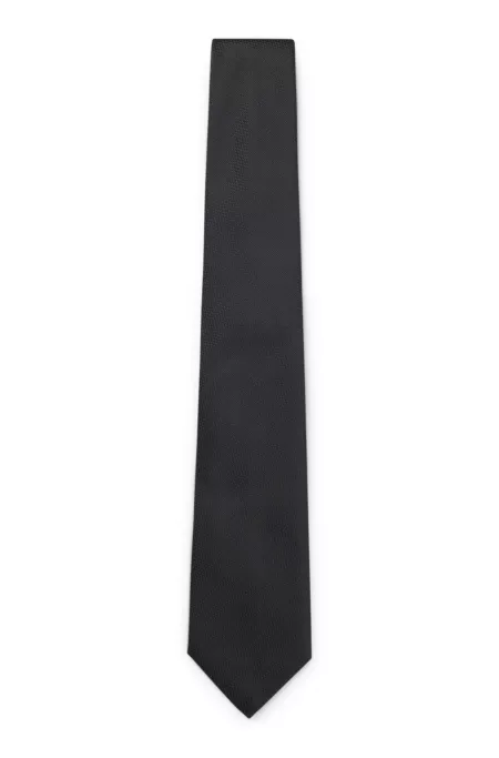 A timeless tie by BOSS. Featuring a satin-like look and feel, this 7. 5cm-wide tie is jacquard woven in pure silk with a solid structure. Round off an eveningwear ensemble with this elevated accessory.