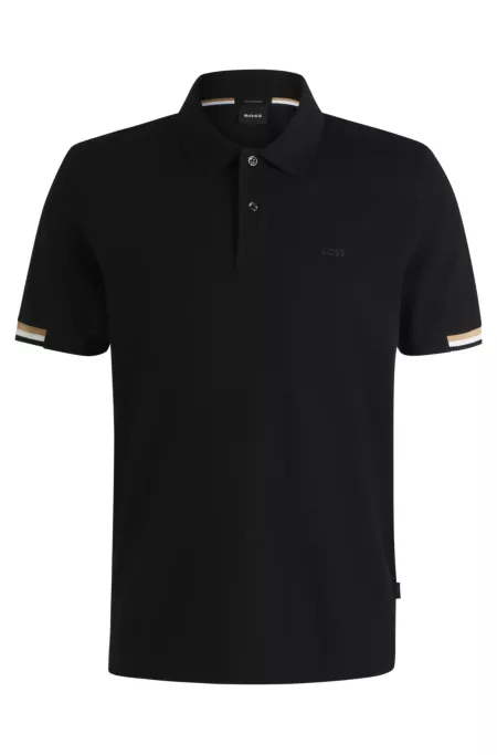 A modern polo shirt detailed with signature stripes by BOSS. Crafted in pure-cotton piqué with a mercerized finish, this short-sleeved polo shirt is trimmed with a tonal BOSS logo.