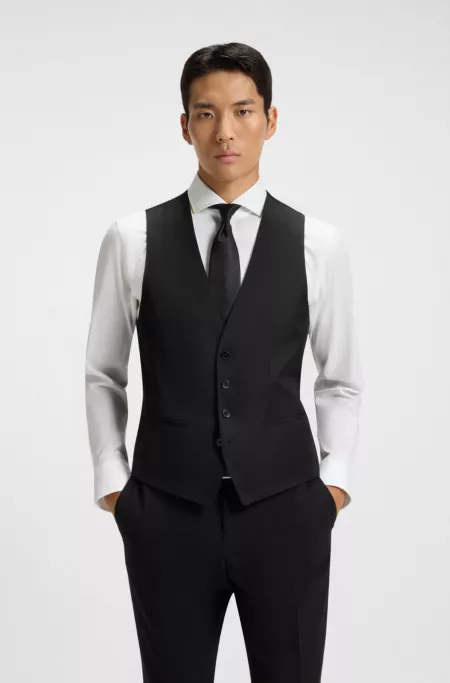 A refined waistcoat by BOSS Menswear. Crafted in serge-woven wool, this single-breasted piece is tailored to a streamlined fit.