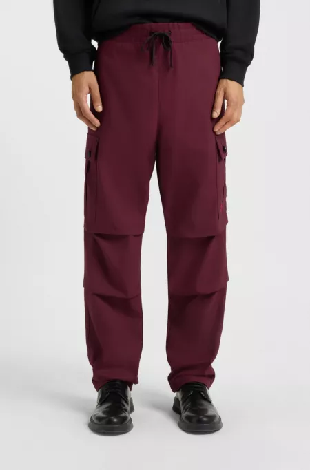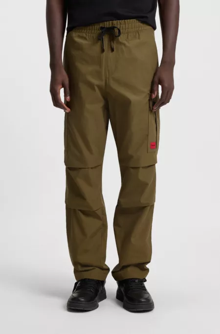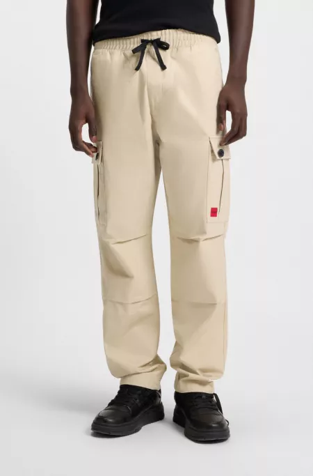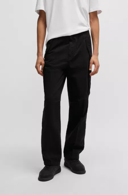 Regular-rise trousers cut to a slim fit with a tapered leg by HUGO Menswear, featuring buttoned cargo pockets and a red logo label.
