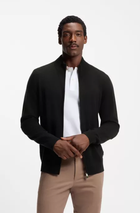 With its pure-cashmere construction and double-ended zip, this BOSS Menswear cardigan is a luxurious layering option. Regular fit.