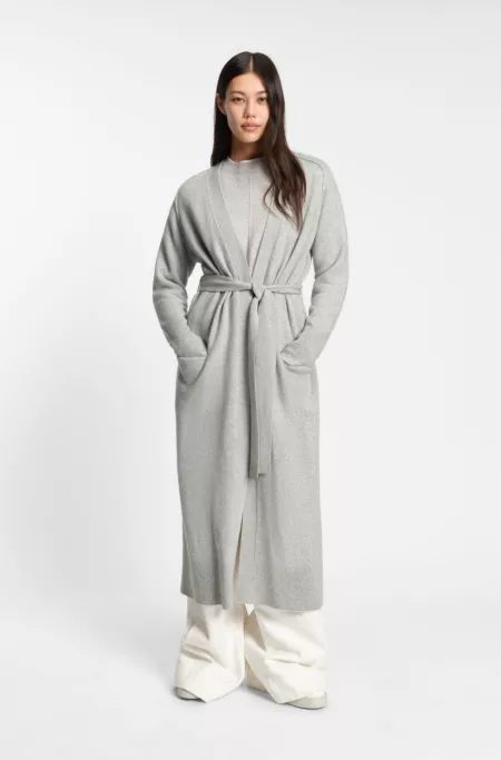 The luxurious cashmere knit of this long BOSS Womenswear cardigan gives a cozy feel. Wear alone or as a layer. Tie-up belt. Melange effect.