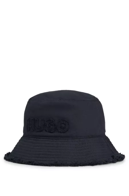 Cotton bucket hat with logo and fringing