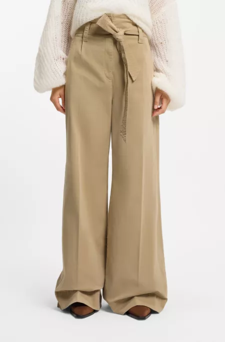 Belted wide-leg pants in stretch-cotton twill