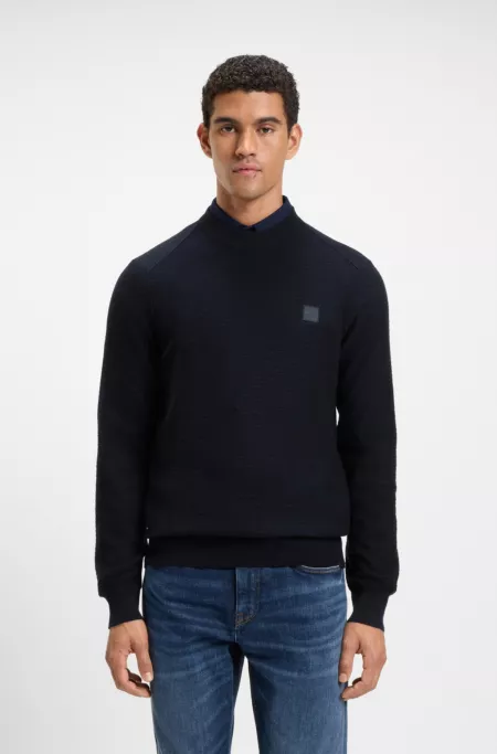 Knitted with a characterful structure, this BOSS Menswear sweater is crafted in soft cotton with luxurious cashmere. Logo patch at the chest. Regular fit