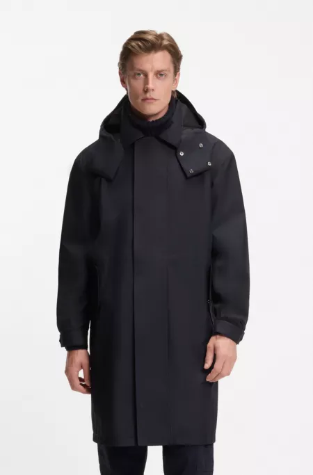 Water-repellent jacket in crinkle fabric with adjustable hood