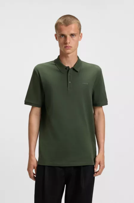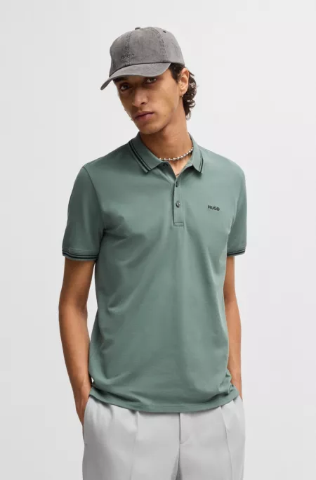 A slim-fitting polo shirt by HUGO Menswear, cut in stretch-cotton piqué. Sporty style with a printed logo at the chest and contrast tipping.