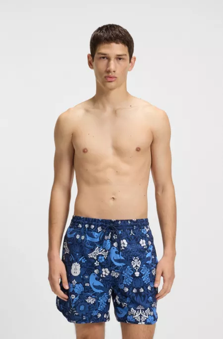 Embroidered-logo swim shorts with print