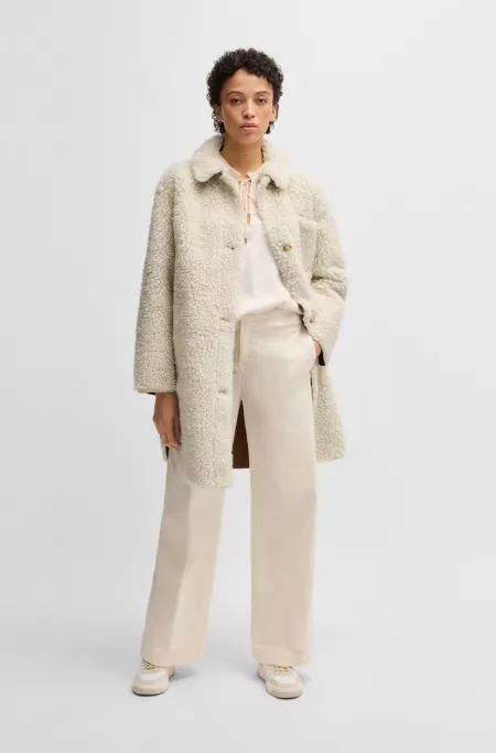 With its oversize shape and large lapels, this cozy HUGO Womenswear coat gives everyday looks modern impact. Plush faux fur. Double-breasted closure.