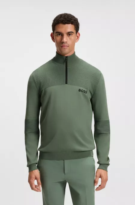 In a straight fit, this water-repellent BOSS Menswear sweater is inspired by golfing styles. Cotton with structure blocking and embroidered branding.