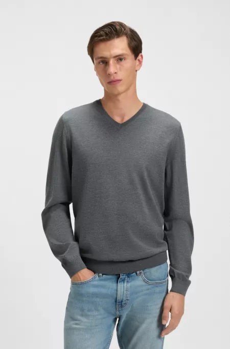 Virgin-wool sweater with V neckline