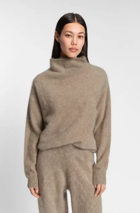 Washed-cashmere sweater with high neck