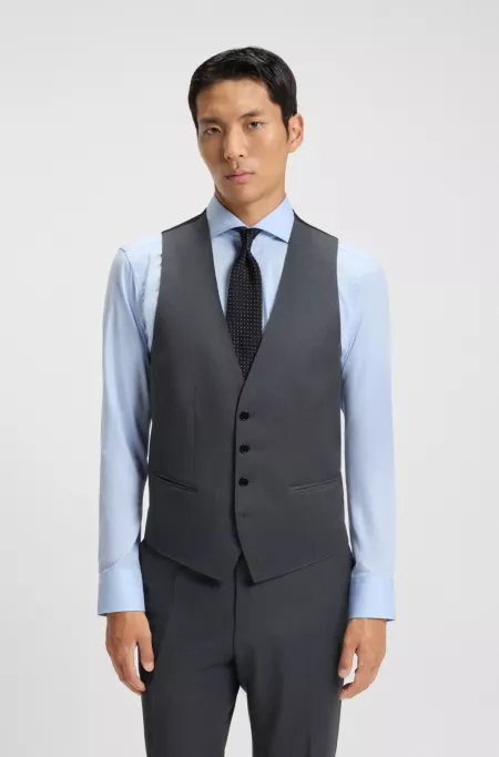 A refined waistcoat by BOSS Menswear. Crafted in serge-woven wool, this single-breasted piece is tailored to a streamlined fit.