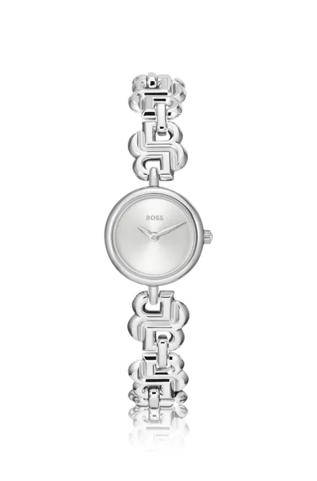 Silver-tone watch with monogram-link bracelet