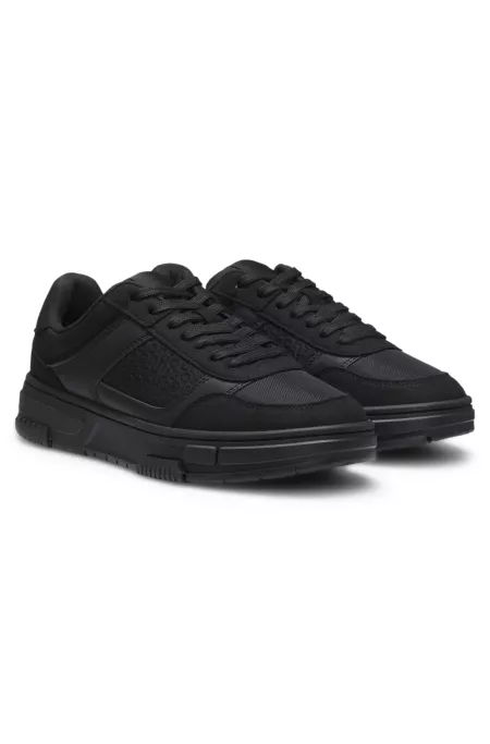 With a hard-wearing rubber outsole, these versatile HUGO Menswear trainers mix up monogram accents and soft faux suede. Distinctive zigzag detailing.