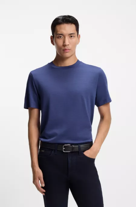 In a lightweight silk-wool blend with elevated detailing, this luxurious BOSS Menswear T-shirt is a step up for your basics. Regular fit. Soft finish.
