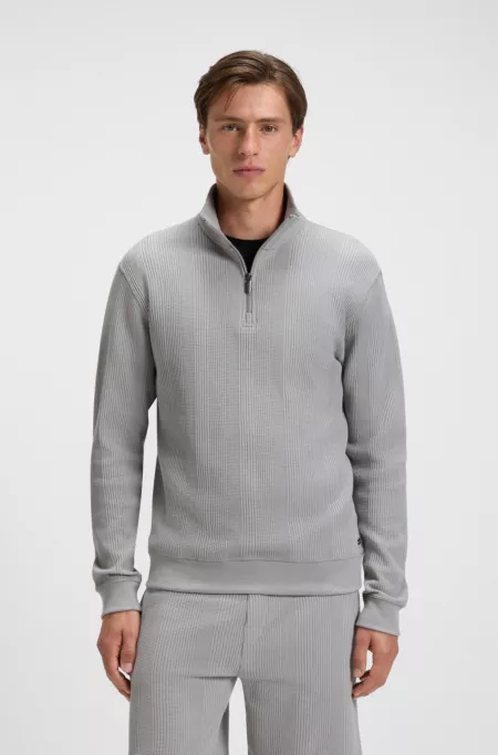 Cotton-blend zipper-neck sweatshirt with waffle structure