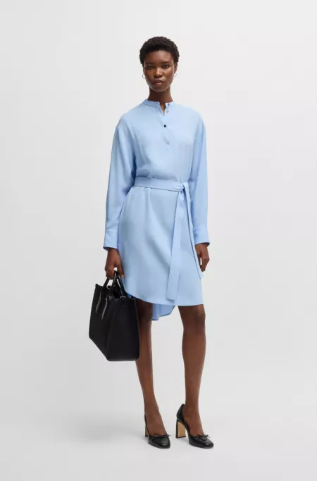 A shirt-style dress with a tie belt by BOSS Womenswear. Featuring a stand collar, this elegant piece is crafted in stretch crepe Georgette.