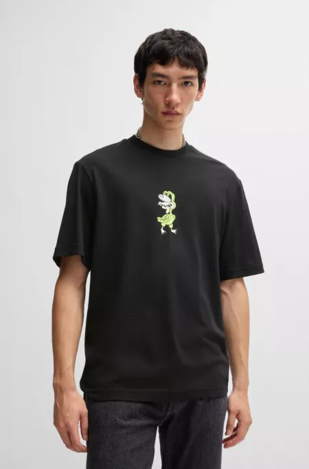Cotton-jersey T-shirt with logo and animal graphic