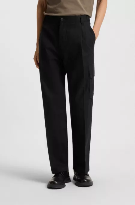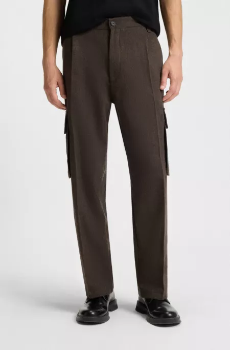 In herringbone fabric blended with wool and cotton, these HUGO Menswear cargo trousers are a casual must. Slim fit with a straight leg.