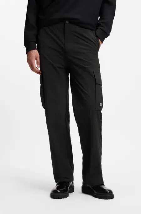 In lightly waxed ottoman fabric, these HUGO Menswear cargo trousers are a modern take on a casual essential. Straight fit. Stacked-logo trim.